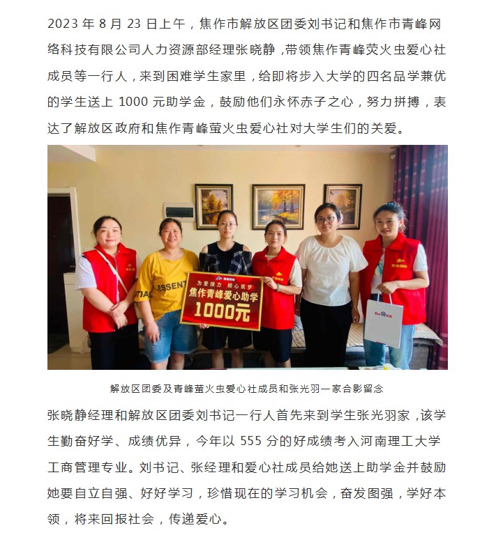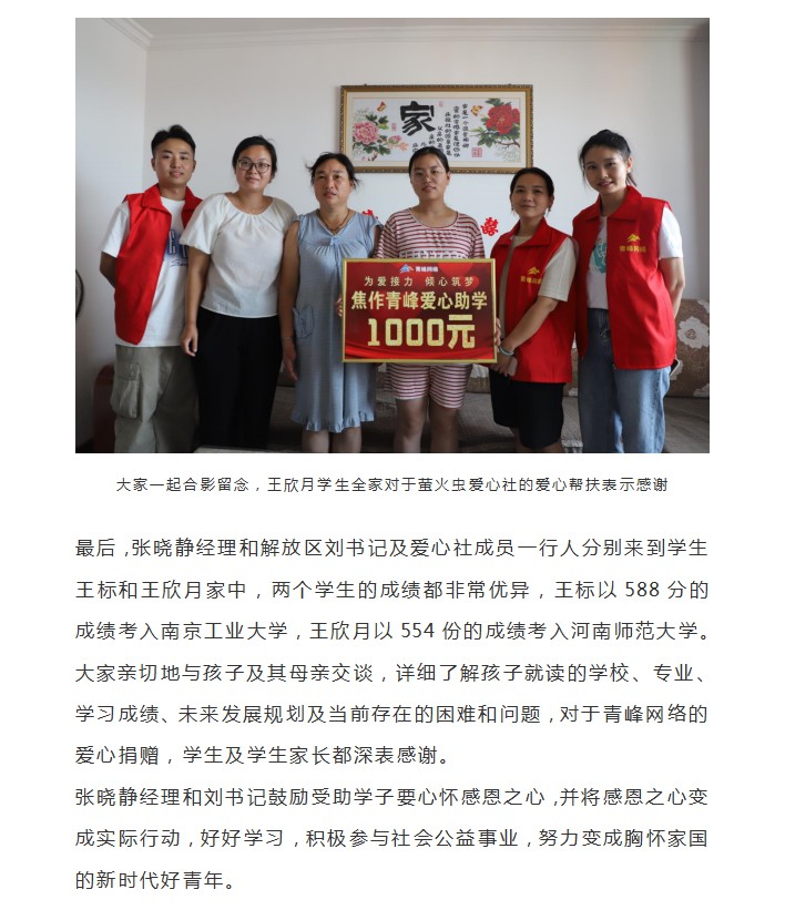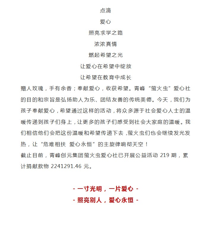 青峰助學 傾心筑夢--青峰創元集團螢火蟲愛心活動第219期